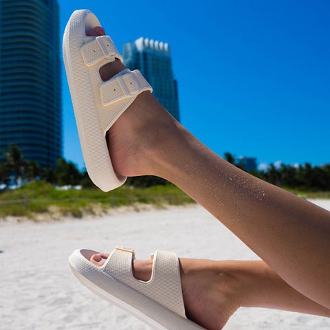 Pillow Walk sandals feature a dual-density EVA sole for optimal comfort and support. Made with memory foam soles and soft, flexible straps, they offer luxurious comfort and a custom fit. Elevate every step with our durable and comfortable sandals.